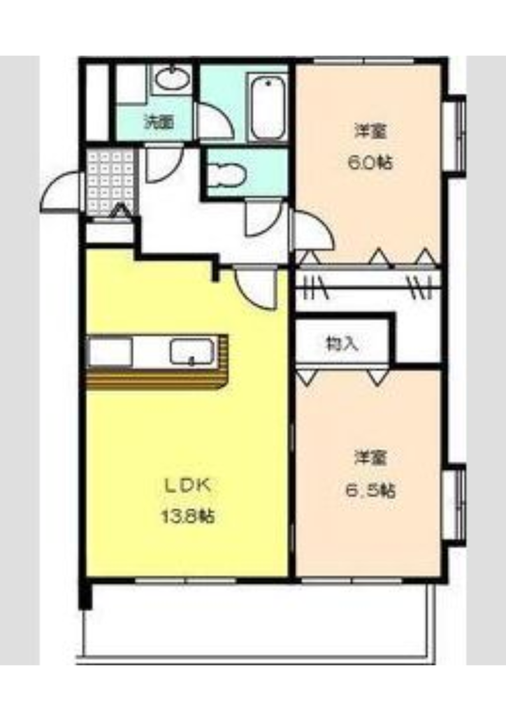 | 間取り | 2LDK(LDK:13.8 洋6.5 洋6.0) |