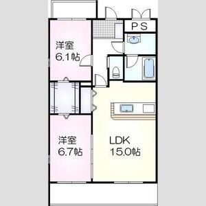 | 間取り | 2LDK[LDK:15畳 洋:6.7畳 洋:6.1畳] |